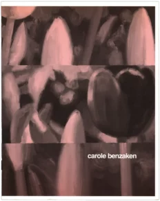 Une peinture gestuelle sans drame ni complexe, fidèle à son référent macro photographique, mais dépourvue du zèle hyperréaliste, dans laquelle le regard se laisse absorber par les étendues colorées et finit par s’abstraire du prétendu sujet : une tulipe est une tulipe est une tulipe. Bref, une peinture jouissive qui nous fait le coup de la plénitude. Alors, devant cette belle insouciance et cette belle matière, l’œil « conceptuel » reste perplexe parce que c’est trop joli, tandis que l’œil tout court aime, d’ailleurs à peu près pour la même raison… Trivial ou sublime ? Au fond, tout cela n’est qu’une question de goût. Or c’est justement de cette méprise autour du beau que la jeune artiste semble s’amuser. D’ailleurs, cette peinture n’est pas aussi idyllique qu’elle en a l’air : que l’on regarde attentivement du côté des tulipes et l’on s’apercevra que le rendu naturaliste diminue à mesure que l’on s’approche. Les fleurs sont un rien bâclées au profit de la matière picturale. C’est que derrière tant d’épanouissement, il y a de la tension. À la surface de la peinture, une fois le choc de la plénitude surmonté, en passant sur tout ce que qu’une femme peignant des fleurs peut impliquer comme symbolisme, apparaît l’intranquillité. L’intranquillité est cette position volontairement incommode de l’artiste vis à vis de l’avant-garde. Mais c’est aussi la confrontation avec l’image photographique ou la vidéo que Carole Benzaken fait subir à la peinture par le biais de découpages qui viennent exclure le motif et qui confèrent à la composition quelque chose de tendu. Sans cesse menacé, le tableau est en passe de devenir autre chose. Alors que l’on croyait y voir du figuratif, il se fait abstrait : c’est la lutte de Carole Benzaken contre l’image, pour la peinture. En fin de compte, peindre à nouveau, ne faire que ça. Repartir de Greenberg en introduisant un soupçon d’impureté.