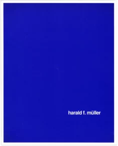 Jusqu’alors, Harald F. Müller exposait ensemble des travaux distincts de photographie et de sculpture, en fait un seul type de sculpture formé de deux parallélépipèdes bleu sombre, verticaux et symétriques, dont la présence obscure évoquait aussi bien le mystérieux monolithe d’Odyssée 2001 qu’une sorte de Kaaba profane mais néanmoins chargée d’aura.
