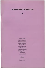 Avec: Henry Bond, Anya Gallaccio, Gregory Green, Karen Kilimnik, Douglas Kolk, Charles Ledray, Max Mohr, Philippe Parreno, Philippe Perrin, Julia Scher, Lauren Szold