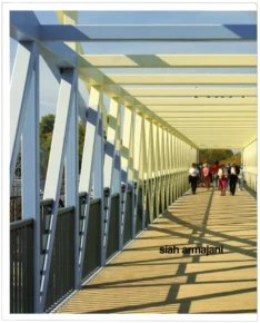 Né en Iran en 1939, Siah Armajani arrive aux États-Unis en 1960 pour y faire des études de philosophie et de mathématiques, tout en gardant à l’esprit la volonté de mener à bien sa vocation artistique. En Iran, il avait déjà étudié la peinture et la calligraphie. Au Macalester College de St Paul, haut lieu du populisme, il fait la découverte décisive de la philosophie transcendantaliste d’Emerson. C’est de cette époque que remontent ses premières peintures calligraphiques recouvertes de poèmes persans. En 1968, il entre en tant que professeur au College of Art and Design de Minneapolis où il rencontre Barry Le Va qui le familiarise avec le milieu de l’art contemporain américain. La même année, il est appelé à restructurer le centre de la petite ville de Jackson dans le Minnesota qui cherche à retrouver un nouvel élan économique. C’est le début d’un travail de quatre années avec les habitants et les autorités de la ville. Pour résoudre le problème de l’exode rural, Armajani se propose de rendre à ce quartier son aspect original en restaurant les habitations du XIXe siècle. En même temps que cette restauration s’avère être la solution la plus économique, elle amène l’artiste à perfectionner sa connaissance des origines de l’architecture américaine.